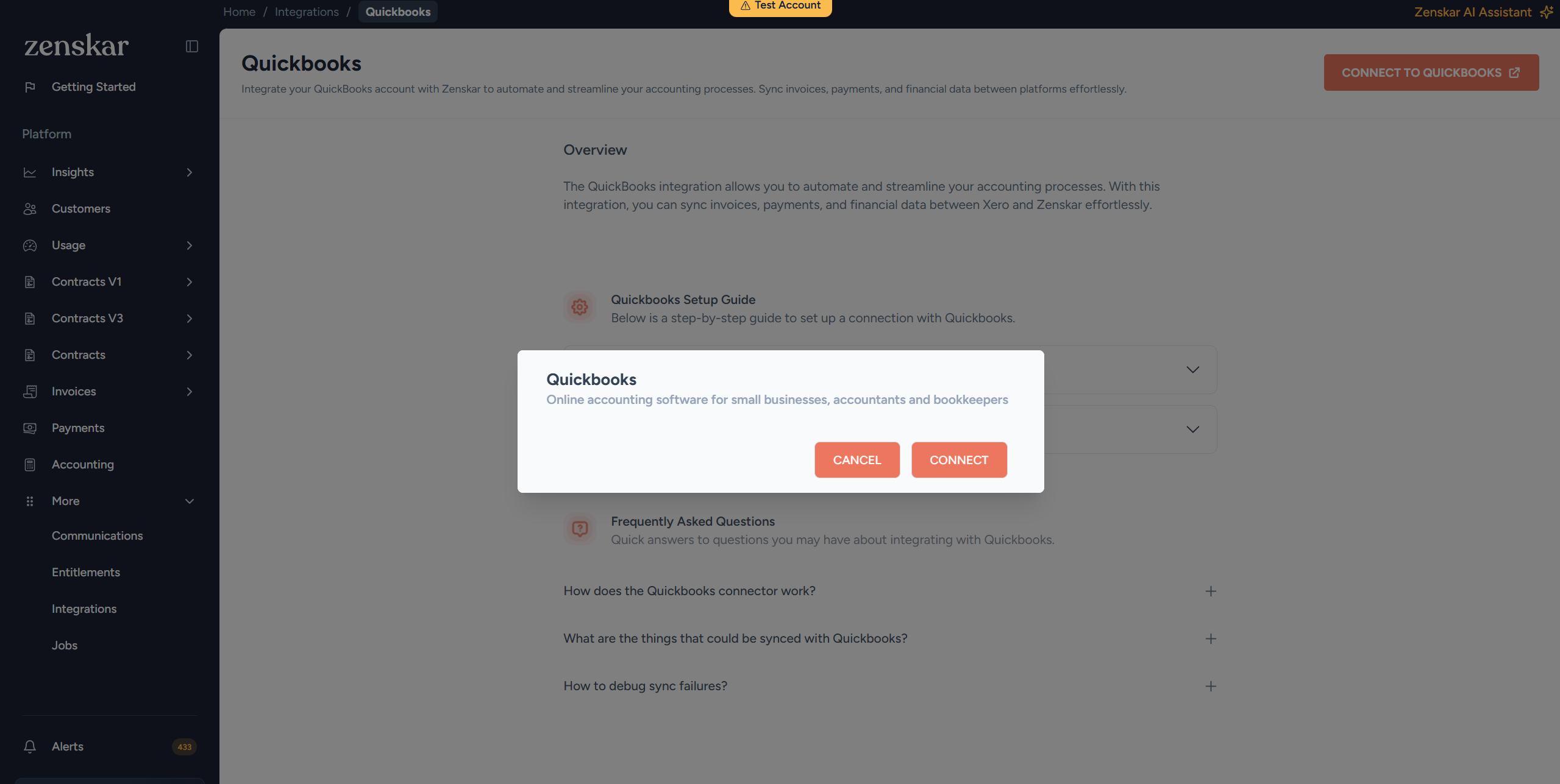 This guide will help you connect your QuickBooks account with your Zenskar account.