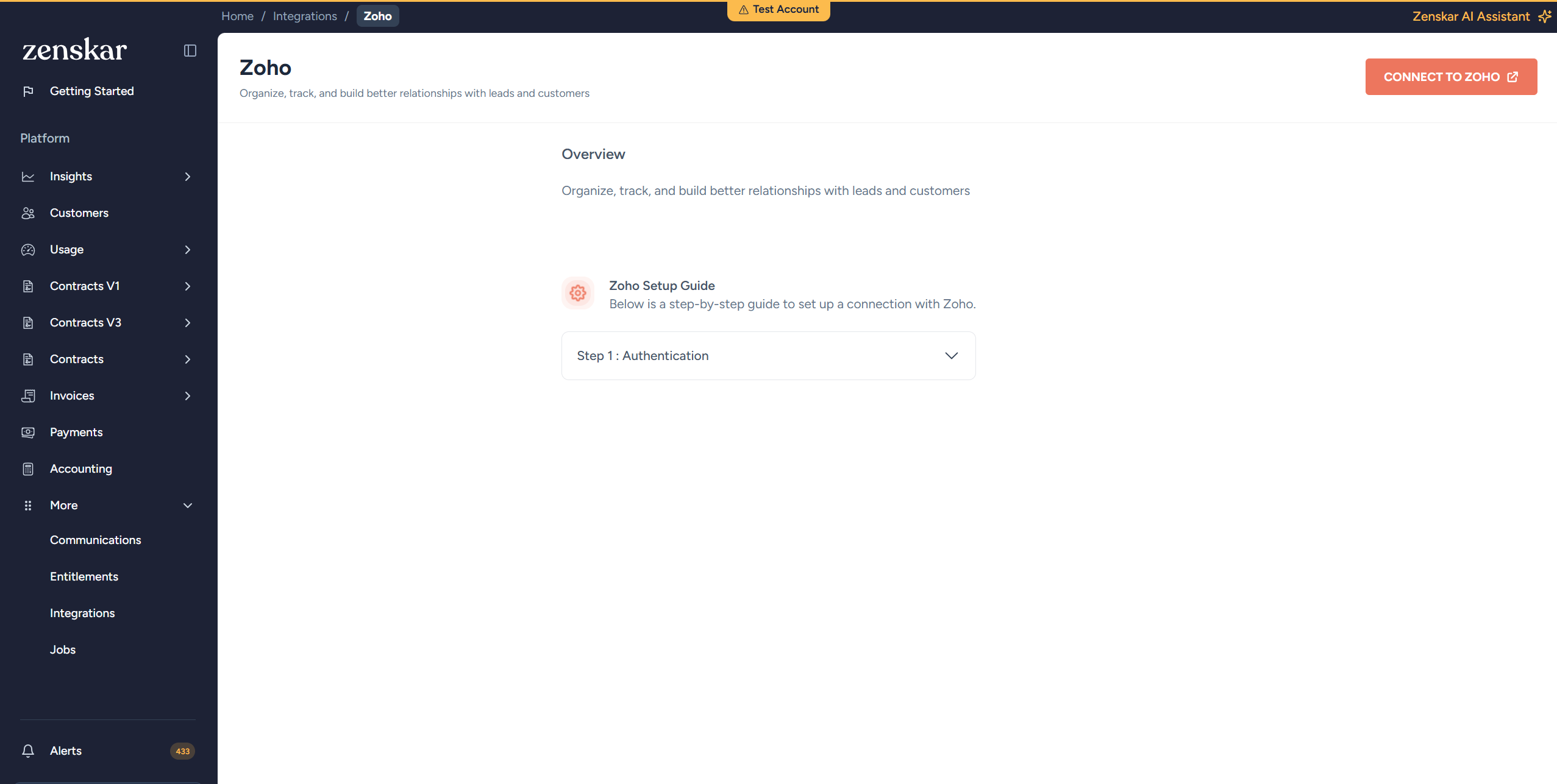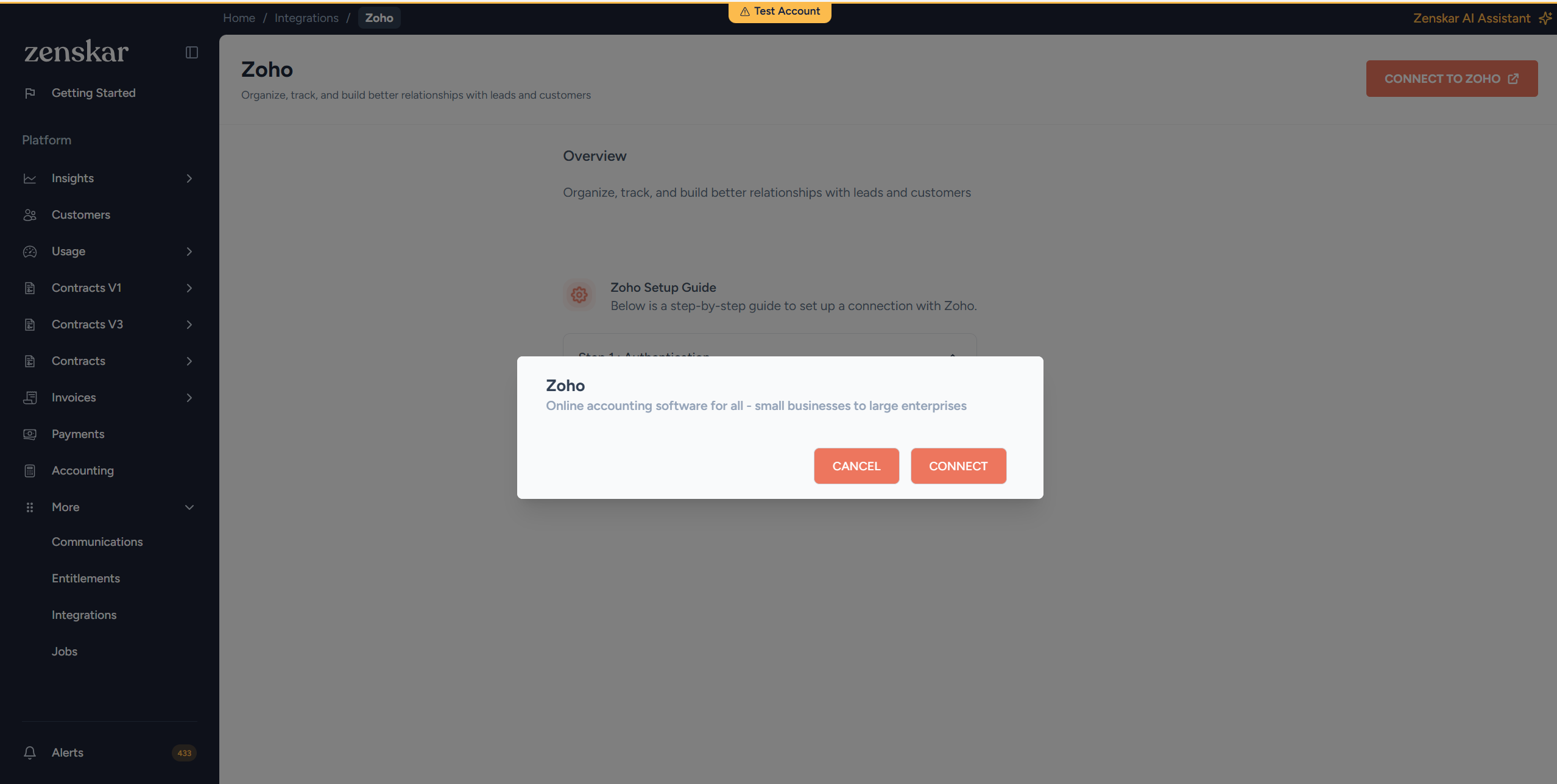 This guide will help you connect your Zoho Books account with your Zenskar account.